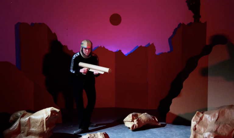 3/16 Billy Sassi, The Battle from Outer Space. 'The Battle...' reflects the uncomfortable experiences of 'Lockdown' in terms of the imposed constraints, but also the potential resulting from the expanse of time. The film embodies the discomfort of facing the uncertainty of ‘purpose’ in a space of alienation, where two spacemen are stranded on a distant planet while a war rages back at home.